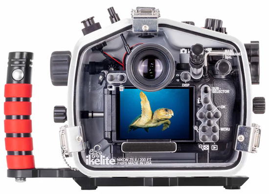 Ikelite 200 DL Underwater Housing for Nikon Z5 II Mirrorless Digital CameraPoliwęglanowa obudowa renomowanego amerykańskiego producenta - firmy Ikelite przeznaczona do obudowy aparatu Nikon Z5 drugiej generacji. Pozwala na nurkowanie do głebokości 60 metrów (200 stóp). Dzięki przeźroczystej tylnej ściance przez cały cza snurkowania możliwe jest kontrolowanie aparatu jak i wnętrza obudowy, natomiast mleczna przednia ścianka redukuje efekt nagrzewania się wnętrza przy wystawieniu na promienie słoneczne co często skutkuje zaparowaniem portu obiektywowego po włożeniu zestawu do wody.