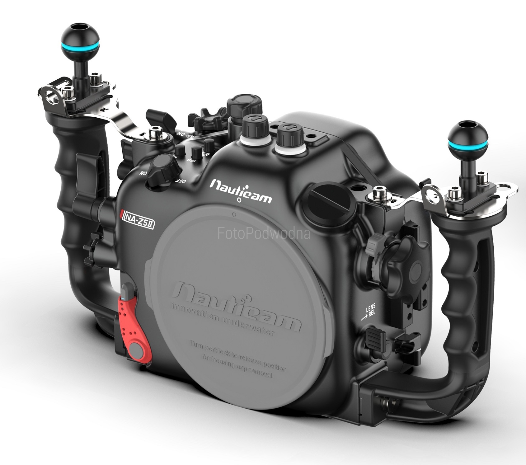 porty obiektywoweObudowa wyposażona jest w system portów Nauticam typu N120. Pozwala on na użycie szerokiej gamy szkieł szerokokątnych i makro przy dobraniu odpowiedniej konfiguracji portów, pierścieni dystansowych oraz zębatek zoom i focus. Użyte mogą być tak obiektywy z bagnetem Z jak i starsze F (przy zastosowaniu adaptera FTZ). Dobór właściwego zestawu do odpowiednich obiektywów przedstawia