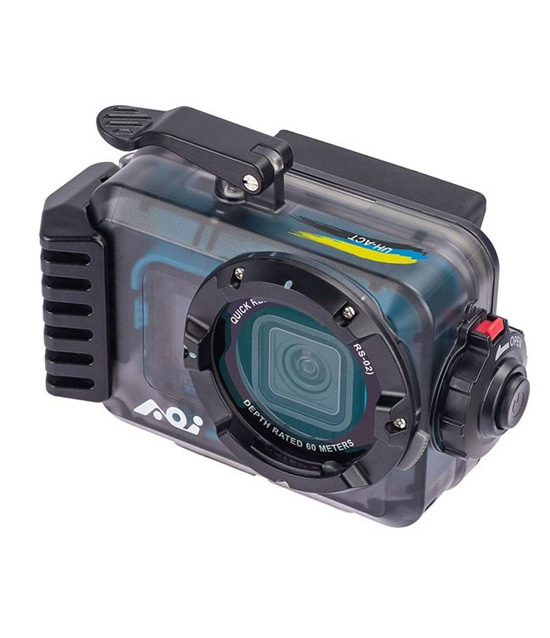 AOi Action Camera Underwater Housing UH-ACT for GoPro, DJI, Insta360Poliwęglanowa, uniwersalna obudowa podwodna dedykowana do użycia z kamerkami akcji firm GoPro, DJI Osmo Action czy Insta360. Dzięki odpowiednim ramkom pozycjonującym instalowanym wewnątrz obudowy możliwe jest użycie różnych kamerek w jednej obudowie - wymienić trzeba tylko ramkę.