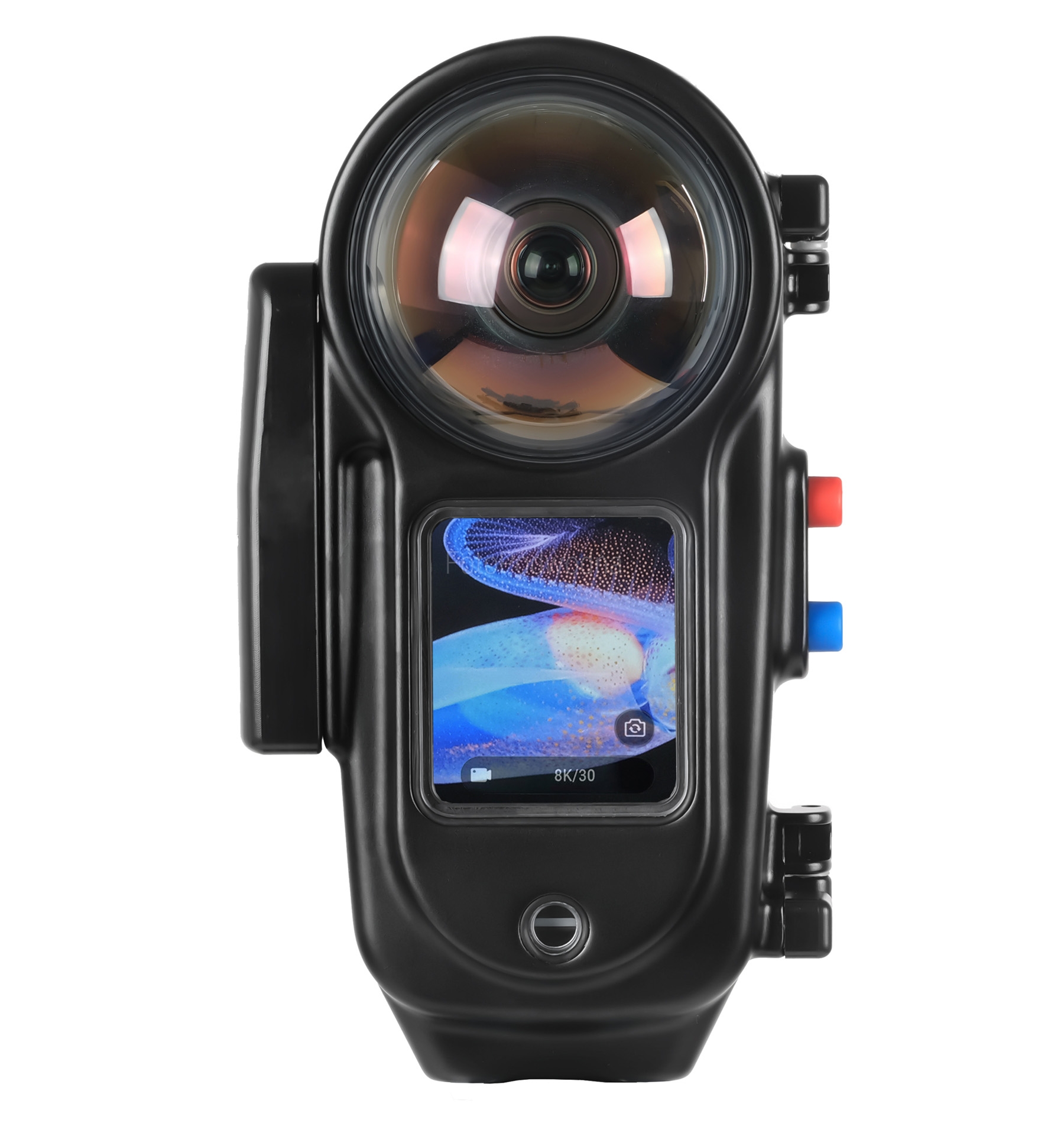 Nauticam Insta360 X5 housingWraz z wprowadzeniem kolejnej generacji kamerki Insta360 - modelu X5 znacznej poprawie uległa jakość otrzymywanego obrazu. To zasługa zastosowania wiekszego przetwornika który w nowym modelu ma 1/1,28", ulepszonych logarytmów przetwarzania oraz wymiennych obiektywów. Te cechy skusiły renomowanego producenta obudów podwodnych jakim jest Nauticam do zaprezentowania swojej wersji obudowy podwodnej która bazując na olbrzymim dooświadczeniu firmy pozwoli jeszcze bardziej poprawić jakośc podwodnych obrazów. Kluczowym posunięciem inżynierów pracujacych nad obudową była możliwość zmiany obiektywów. Nauticam zastosował w obudowie swoje soczewki bazujące na wysokojakościowym szkle optycznym co pozwoliło na znaczne poprawienie rozdzielczości oraz wyeliminowało refleksy i odbicia będące zmora nagrań pochodzących z firmowych obudów.