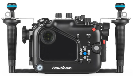 Na powierzchni obudowy umieszczono liczne elementy sterujące. Nie odpowiadają one jednak ich umieszczeniu na korpusie aparatu, a zgodnie z filozowią firmy Nauticam sa zlokalizowana w miejscach umożliwiających ich najwygodniejsza obsługę. Kluczowe elementy zlokalizowano na dzwigniach w pobliżu rączek obudowy, tak by zapewnić do nich dostęp bez konieczności odrywania dłoni od uchwytów.